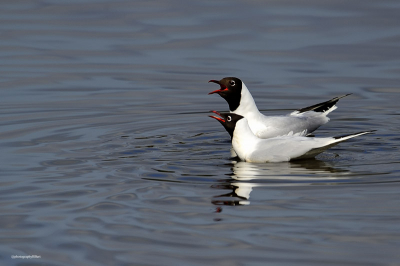 Roepende meeuwen tijdens het middagzonnetje vanuit de schuilhut getrokken Scientific name: Chroicocephalus philadelphia