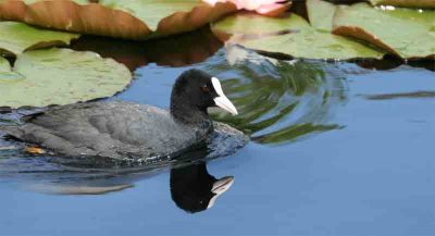 Meerkoet. Foto genomen vlakbij mijn huis bij een kleine vijver. Koppel aanwezig met drie jongen. Scientific name: Fulica atra