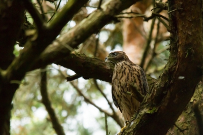 Hoorde hem roepen en was er in eerste instantie voorbij gelopen tot ik omkeek. Aan de veren in de snavel te zien was deze net klaar met zijn/haar prooi. Vind het jammer dat de achtergrond nogal druk is, een plek met betere doorkijk was er helaas niet. Scientific name: Accipiter gentilis
