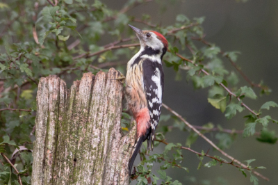 Vanuit een vogelhut, bij zeer donker en slecht weer, mijn eerste waarneming van deze Specht. Scientific name: Dendrocoptes medius