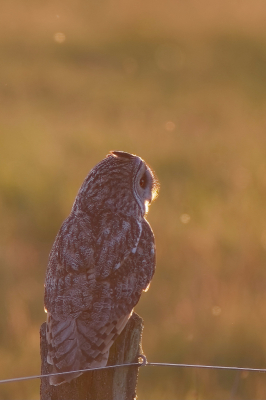 Tijdens het jagen ging de ransuil even rusten op een paaltje. Zo kon ik een mooie tegenlichtopname in de avondzon maken. Scientific name: Asio otus