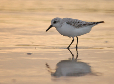 Met de laatste zonnestraaltjes op het strand nog dit drieteentje vastgelegd.  Ik vond de reflectie op het water door het tegenlicht wel iets hebben.