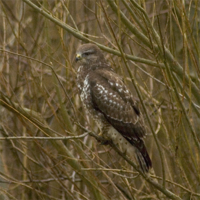 Ondanks akelige donkere lucht mijn eerste redelijk geslaagde buizerdfoto. Door donkerte en 800 ASA is kwaliteit niet geweldig. Echter dit smaakt naar meer!