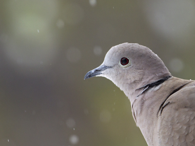 Met de lichte sneeuwval ontstond een prachtige achtergrond. Scientific name: Streptopelia decaocto