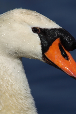 Felle zon in de rug..Mooi hoe die druppels op zijn kop blijven liggen. Scientific name: Cygnus olor