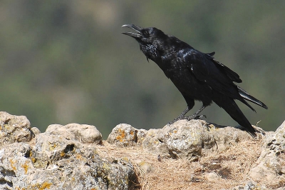 Tijdens het fotograferen van Vale Gieren kwam deze Raaf nog even mooi poseren. Beetje gecropped. 550mm, F8, 1/500s, ISO200, -0.7s. Scientific name: Corvus corax