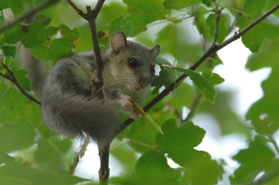 Deze Relmuis liet zich bij daglicht redelijk fotograferen. Hij zat in een Esdoorn en deed zich tegoed aan de zaden.