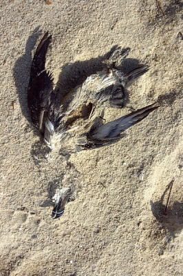 Struinend langs het strand nabij Vlissingen trof ik deze dode vogel aan. Is het een papagaaiduiker? Die horen hier toch niet thuis en hebben toch een oranje punt aan de snavel. Scientific name: Fratercula arctica