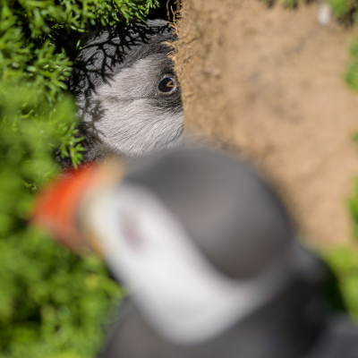 Tijdens onze vakantie in Wales hebben we ook een dag het vogeleiland Skomer bezocht. Er zit daar een hele grote kolonie papegaaiduikers en het voetpad loopt dwars door de kolonie heen. De papegaaiduikers zijn daar dus ook totaal niet schuw en zijn duidelijk gewend aan de bezoekers. In een van de holen zag Daan 2 jonge papegaaiduikers zitten. Een zwart-wit versie van de ouder. Erg leuk om te zien! Scientific name: Fratercula arctica
