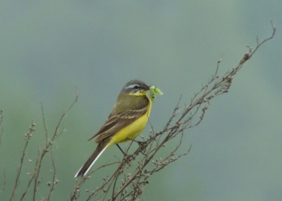 mooi hoe hij schuin naar me kijkt met een rups in de snavel Scientific name: Motacilla flava
