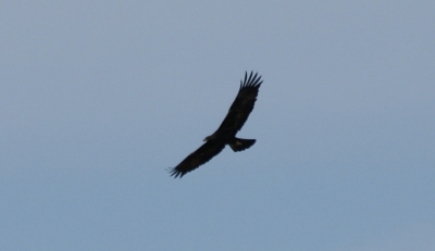 Toen we in de buurt van Toujane reden kwamen 2 van deze vogeltjes (ongelooflijk wat waren ze groot) ons gezelschap houden, ze hadden er al snel genoeg van en na een schitterende duik van 1 van de 2 vogels verdwenen ze beiden weer aan de horizon. Nu is mijn vraag of 1 van de roofvogelkenners hier op bp mij aan de hand van het silhouet van dit dier kan bevestigen dat het hier om 2 steenarenden ging, of was deze verschijning toch iets anders? Scientific name: Aquila chrysaetos