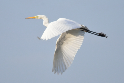 Als vliegend poseren nog niet bestond, dan heeft deze reiger het uitgevonden! Hij stond ver buiten bereik van mijn lens te vissen. Toen hij het genoeg vond, vloog hij recht op mij af en boog naar rechts bij de rietkraag waar ik verdekt stond opgesteld... Scientific name: Ardea alba