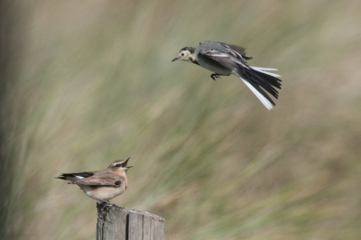ik observeerde deze tapuit toen deze kwikstaart aanviel; het was immers zijn paal. Ik kon mooi serietje schieten, waarvan hier een beeld Scientific name: Oenanthe oenanthe