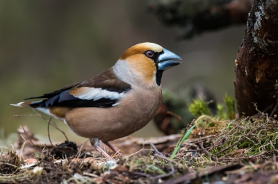 Hier de aangepaste versie van deze voerende Appelvink, die ik fotografeerde in hut 03 van Han Bouwmeester. Scientific name: Coccothraustes coccothraustes