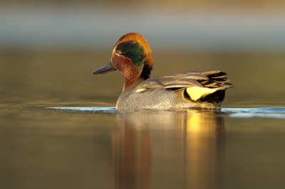 De Wintertaling zag iets aan de linkerkant. Opeens zette de vogel een mooie kam op. Helaas kon ik vanuit mijn hut niet zien waarom. Scientific name: Anas crecca