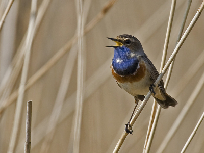 Eindelijk de blauwborst er prachtig op kunnen zetten! Ging op een paar meter vrij in een rietstengel luid zitten zingen. Heel gaaf moment! Ben benieuwd wat jullie ervan vinden. De 1ste foto heb ik jullie gisteren al laten zien. Dit is de andere. (ik had 2 goeie foto's) Scientific name: Luscinia svecica