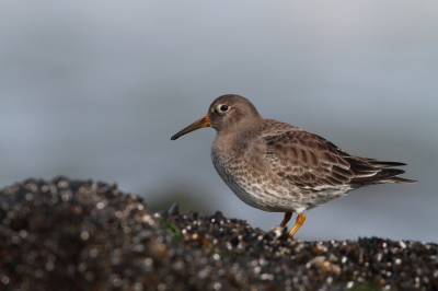 In de winter kleding is hij grijs-bruin met witte oorring en kin, lichte schubben op dekveren en valt niet op. Scientific name: Calidris maritima